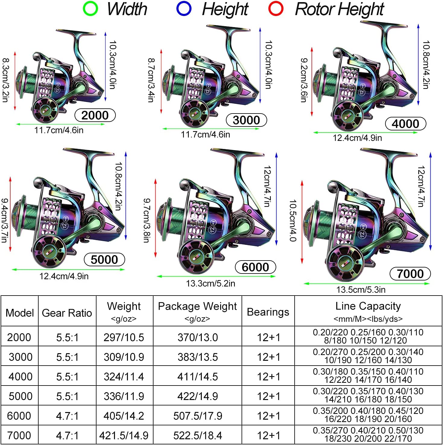 Sougayilang Fishing Reel, Colorful Aluminum Frame Spinning Reels with - 12+1 Stainless BB, Oversize Aluminum Handle for Saltwater or Freshwater Fishing