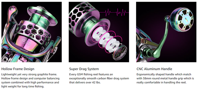 • 【CNC Aluminum handle】 Ergonomically shaped handle which match with 38mm round metal handle grip which is really comfortable in handling the reel, improve the reel winding capability that can relieve wrist and hand. ensures this reel will be bringing big fish to your boat for years to come. GSM is a great choice for lighter freshwater applications. Ideal for gamefish including freshwater fish like bass, walleye, trout as well as popular inshore species like redfish, speckled trout and flounder