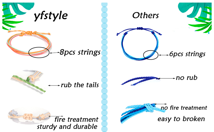 • The summer beach bracelets are made of waterproof wax rope, never fade and make your skins allergic, you can wear our VSCO ankle bracelets and enjoy the sun on the summer beach never worry about its fade and breakage.