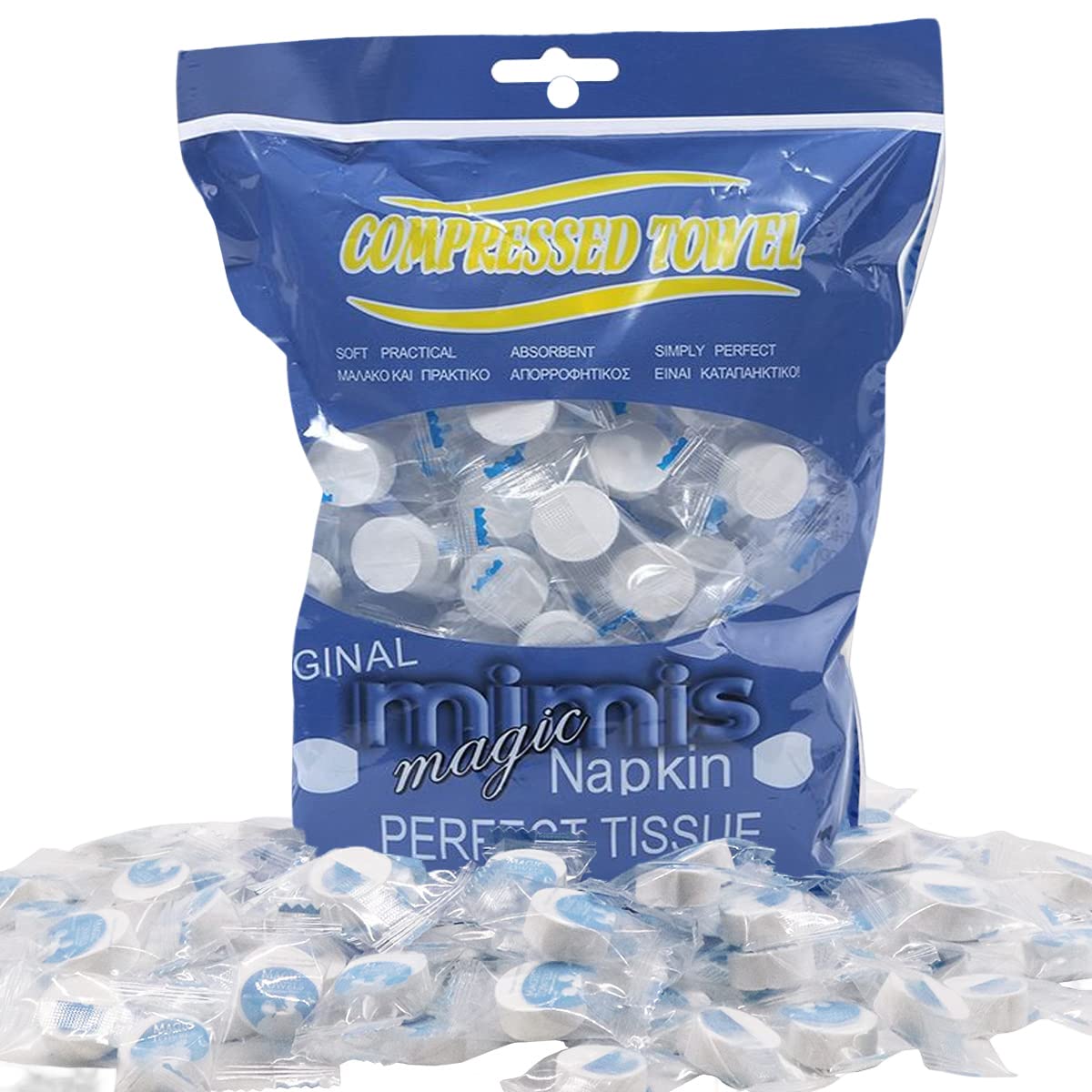 Compressed Towels Portable Disposable Compressed Cotton Coin Tissue Towel for Travel, Camping, Hiking, Sport, Beauty Salon, Home Hand Wipes 100Pcs (8.6in×9in)