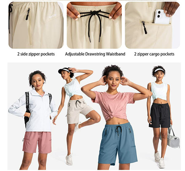 • Elastic Waistband: The Santiny womens cargo shorts have a 360-degree elastic waist with adjustable drawstring to prevent pressure marks on the tummy and offers a custom fit during hiking.