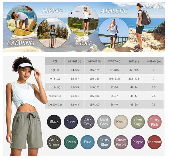 • Versatile Occasions: The quick dry summer shorts are perfect for hiking, camping, travelling, athletic, golf, fishing, climbing, kayaking, biking, walking, running, jogging,workout, outdoors or daily casual wear.