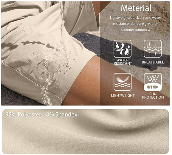 • Sun Protection: The lightweight bermuda shorts made with stretch-woven fabric which build-in UPF 50+ to provide great protection against harmful ultraviolet rays during outdoor activities.