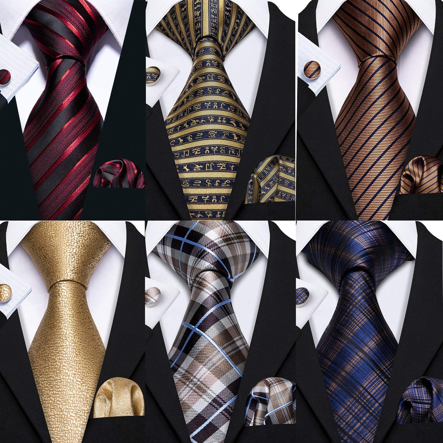HIGH-QUALITY SILK-Fabric feel smooth,soft and comfortable.6 different styles, different colors, the same material of ties, pocket square, cufflink suit you can choose, and give a tie clip, different ties with different clothes, there is always a suitable for you!