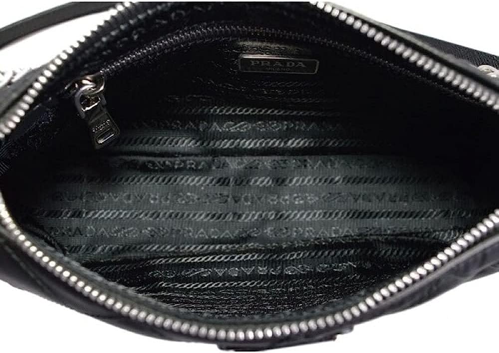 Model number: 1BH026. Quilted nylon material. Silver-tone hardware. Zipper closure. Signature Prada triangle logo.