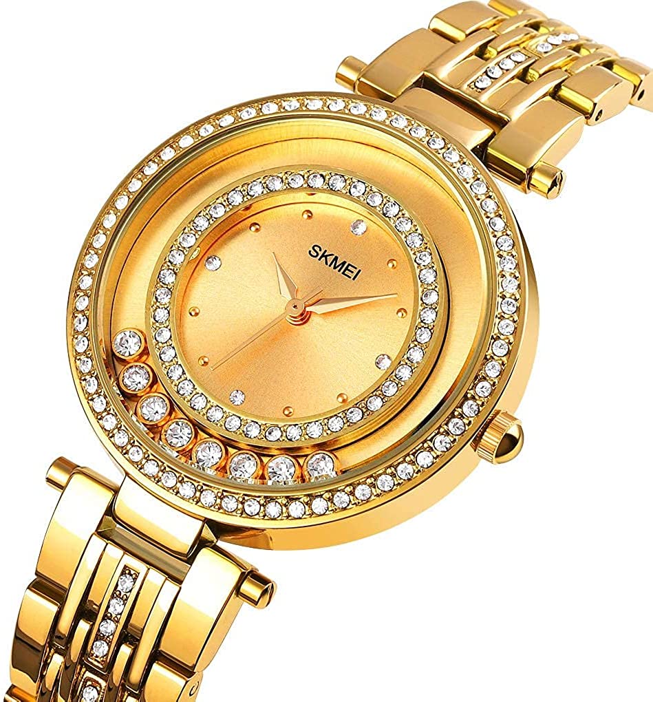 SKMEI Lady Watches for Women Female Bling Dress Fashion Luxury Diamond Business Casual Analog Quartz Waterproof Stainless Steel Wristwatches Gifts