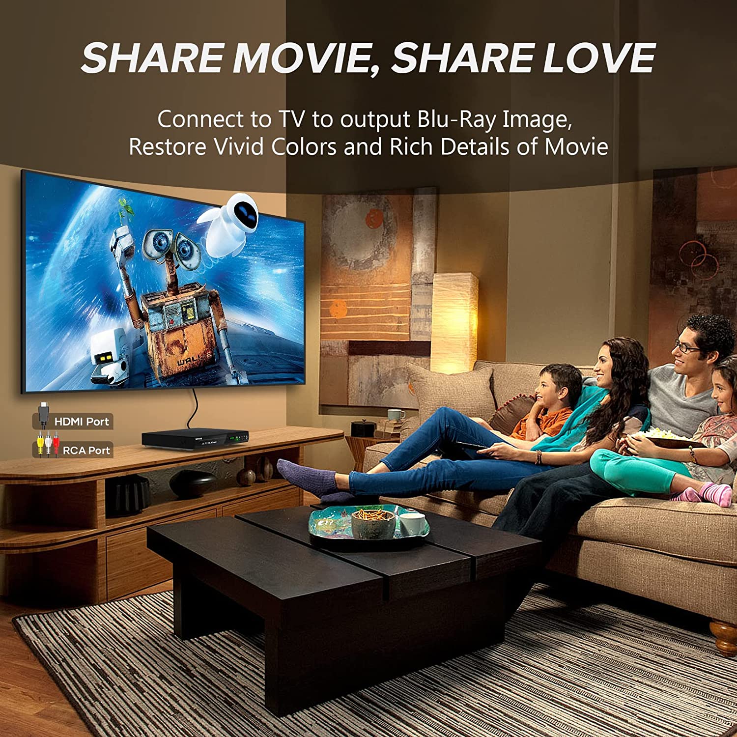WONNIE blu-ray home DVD player can connect to TV with provided HDMI or RCA cable Easily. Support 1080P full HD image, the contrast and clarity are far superior to traditional DVD players, see every frame detail of the movie. Blu-Ray chip enables the player to have a wider range of color decoding capabilities, restore the most realistic colors to the human eye, bring you a visual feast
