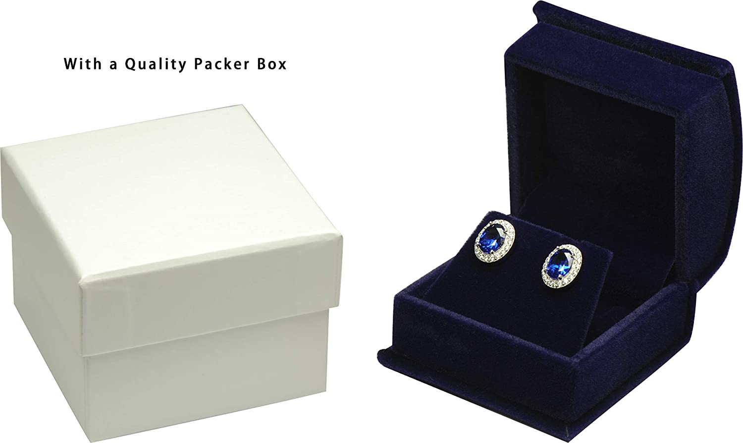 Navy Blue Color Luxury Velvet Multiple Use Earring Necklace Pendant Jewelry Gift Box for Wedding, Birthday, Valentine' Day, Mother's Day, Christmas...Comes with an Extra Individual White Packer Box Si