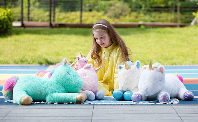 - UNIQUE DESIGN:There is a zipper on the belly of the unicorn. When you open the zipper, you can see 4 little unicorns inside it.