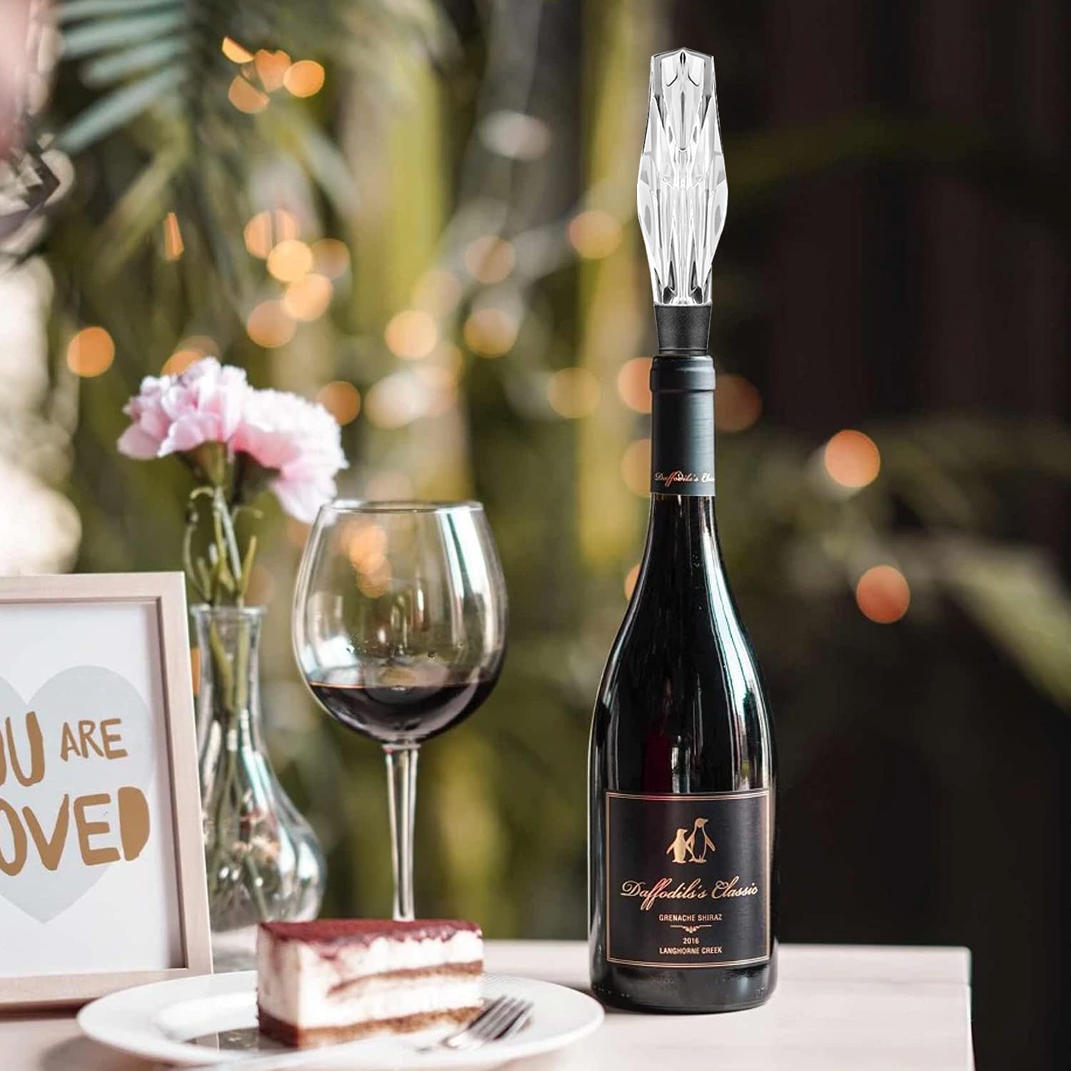 ? SAFE AND DURABLE - Premium 304 stainless steel and BPA-free acrylic will never change the taste of your wine. Highest quality certified food grade materials ensure pure aroma of your wine. The tapered stopper with with stripes provide a leak-free seal for wine bottles of all sizes.
