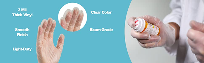 • COMFORTABLE & VERSATILE: Vinyl gloves provide a comfortable loose fit & a smooth finish making them easier to change. Commonly used for non-sterile medical exams, food service, housekeeping, & more!