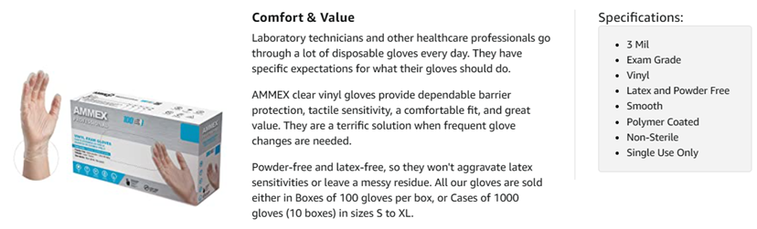 • QUALITY YOU CAN COUNT ON: A global leader in products that enhance health, hygiene, and safety; Ammex gloves are favored by doctors, home healthcare providers, nurses, daycares, and janitors alike.
