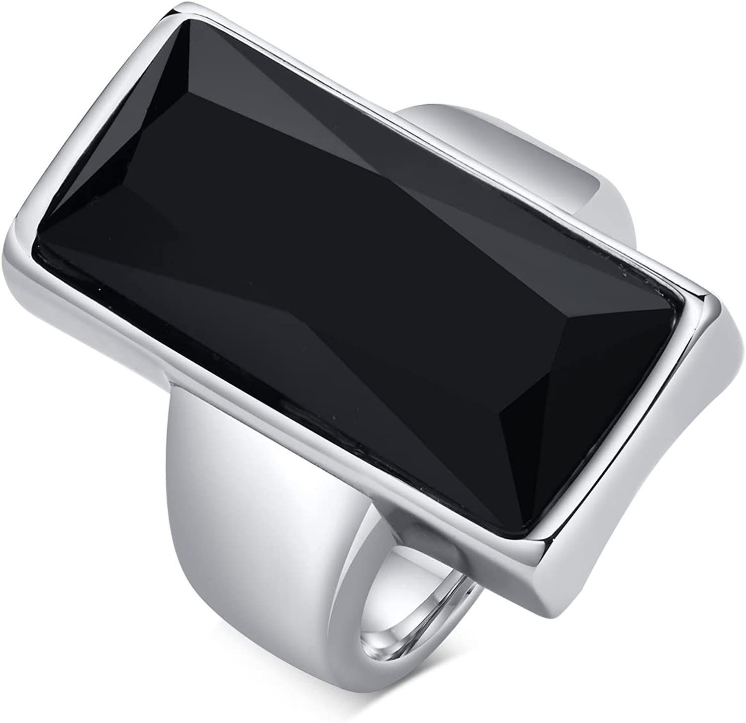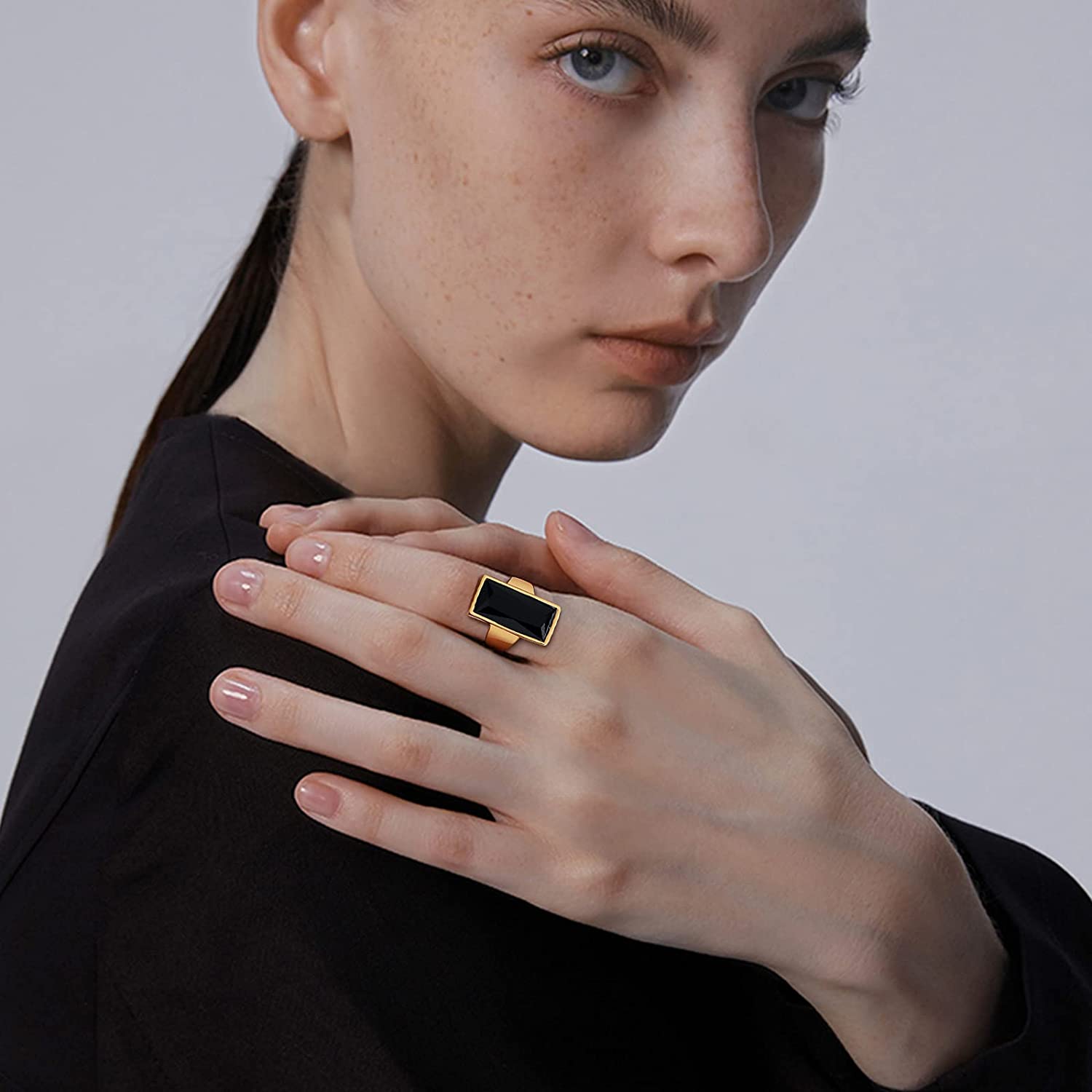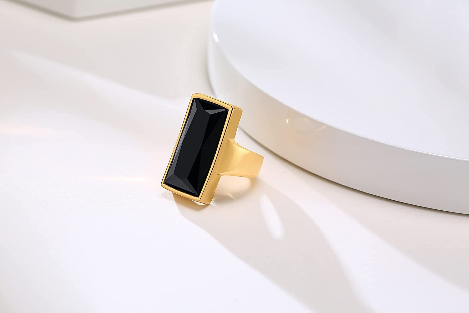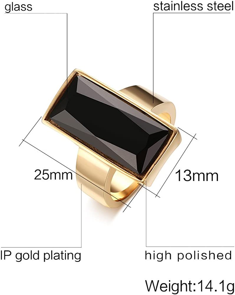 VNOX Stainless Steel Gold Plated Rectangular Black Glass Crystal Ring for Women