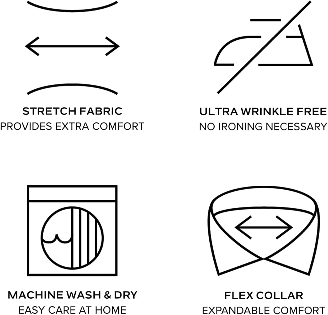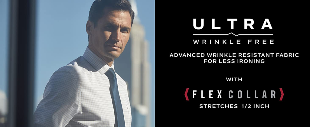 • Ultra Wrinkle Free: Advanced wrinkle-resistant fabric for less ironing and even easier care at home. Flex Collar: Stretches up to half an inch for expandable comfort. Stretch: Fabric stretches and moves with you for extra comfort.