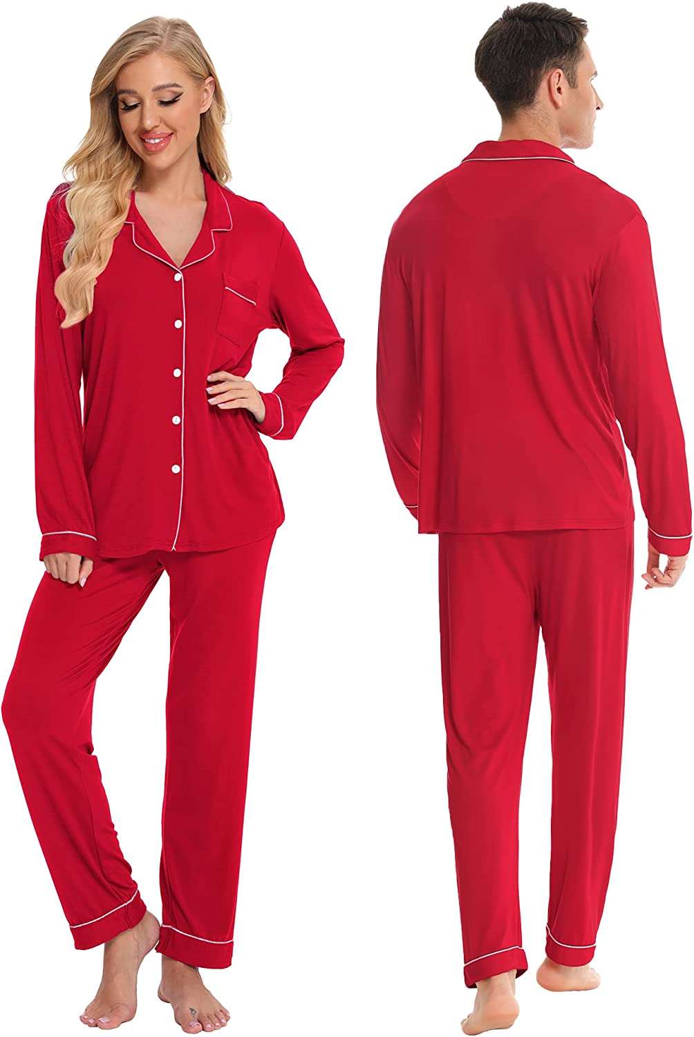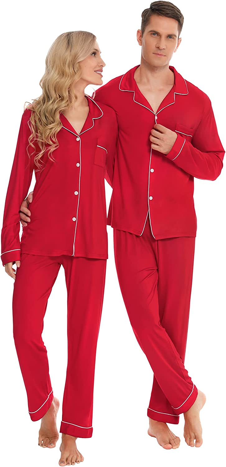 • BUTTON-FRONT PAJAMAS SETS - Classic Matching Family Xmas PJs come in the popular warm style,each christmas pajama included 2-pieces of pajamas,which feature a convenient long-sleeve top with a notched collar,button-up closure,and a chest pocket,contrasting piping for a modern take on a PJ classic; Full-length pants fit perfectly with an elastic waistband, keeping you comfy without being too tight
