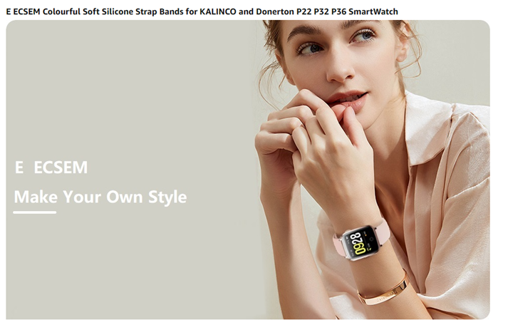 [Personalized design]: Specially designed accessory bands compatible for KALINCO P22 P32 P36, Donerton P22 P32 P36 Smartwatch. It is also applicable to other watches with 20mm lug width. Flexible and lightweight, Each color is seemed like a brand new watch.
