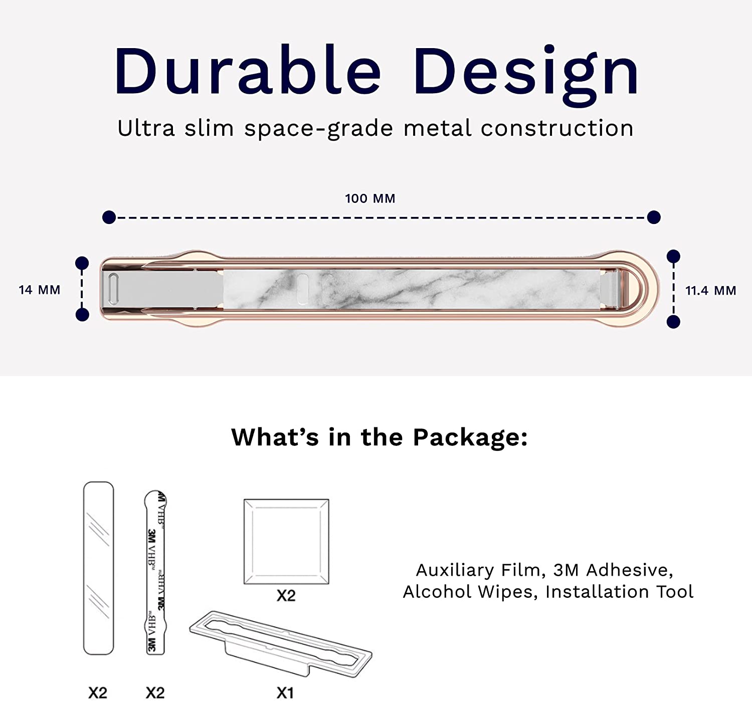 • Slim and Durable Grip for Cell Phones - SleekStrip phone grip is made of premium space-grade alloys and specialized steel to ensure durability and versatility. At only 0.11 inches, SleekStrip fits in your pocket or your small bag.