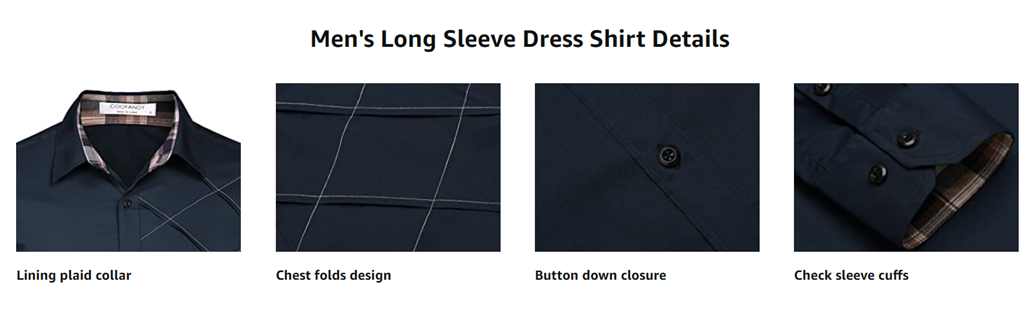 COOFANDY Men's Cotton Dress Shirts Long Sleeve Plaid Collar Shirt Slim Fit Casual Button Down Shirt