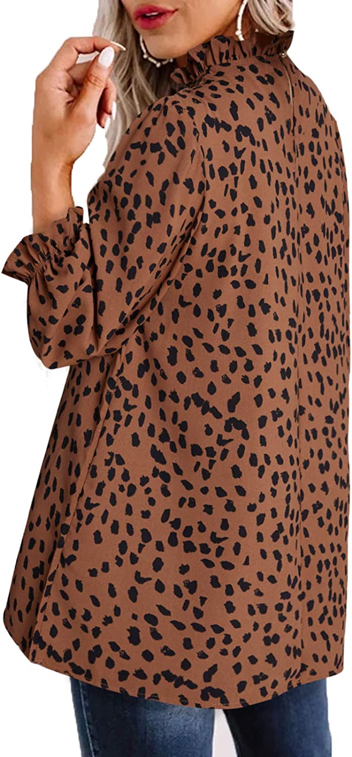 Avanova Women's Leopard Printed Ruffle Hem Long Sleeve Mock Neck Blouses Top