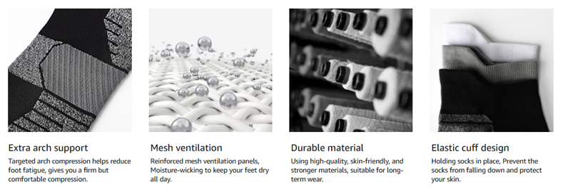 [MESH DESIGN & BREATHABLE] These compression ankle socks for women are made of high-quality material, which can quickly absorb moisture and release sweat. Mesh ventilation in the arch reduces heat and increases perspiration, good moisture-wicking performance to help your feet keep cool and breathable all-day long
