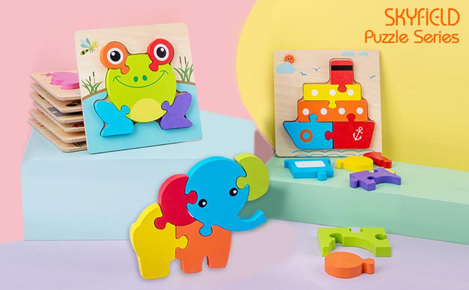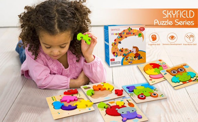 SKYFIELD Wooden Toddler Puzzles Series, Your Best Shapes & Colors & Animals/Vehicle Learner: