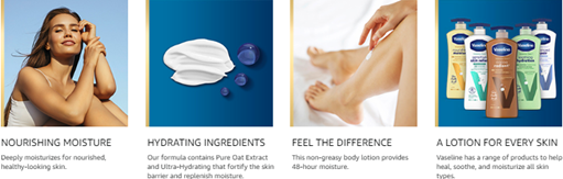 Vaseline Intensive Care Essential Healing is now Vaseline Intensive Care Nourishing Moisture. Vaseline Intensive Care Nourishing Moisture lotion locks in moisture and deeply nourishes for healthy-looking skin. This body lotion is formulated with Pure Oat Extract and Ultra-Hydrating Lipids that fortify the skin barrier and replenish moisture. With daily exposure to environmental triggers (like wind, lack of humidity, and sun), skin's natural moisture barrier can break down, allowing for water to escape the skin. But the Ultra-Hydrating lipids in our lotion fortify the skin barrier and replenish moisture to allow the skin's natural barrier to recover. This lotion locks in moisture and promotes smooth, naturally glowing skin. The body moisturizer is clinically tested to provide 90% more skin moisture (vs. untreated skin). This body lotion for dry skin absorbs fast for rich moisturization without the residue and provides 48-hour moisture. Use this dermatologist-tested body lotion daily on dry, rough skin for stronger, noticeably healthy skin. Just apply to your skin for hydrating relief. This Vaseline lotion bottle is made of 50% recycled plastic. Our ambition is to get to 100% recycled plastic in the near future.