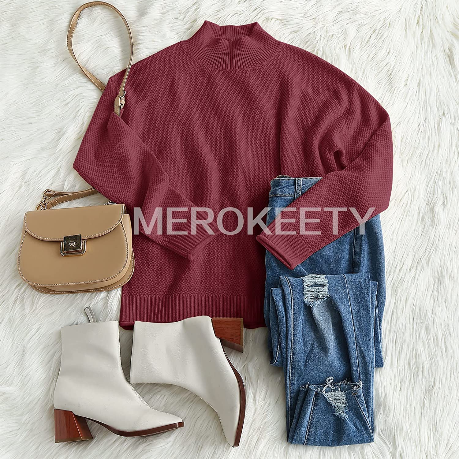 MEROKEETY Women's Long Sleeve Turtleneck Cozy Knit Sweater Casual Loose Pullover Jumper Tops