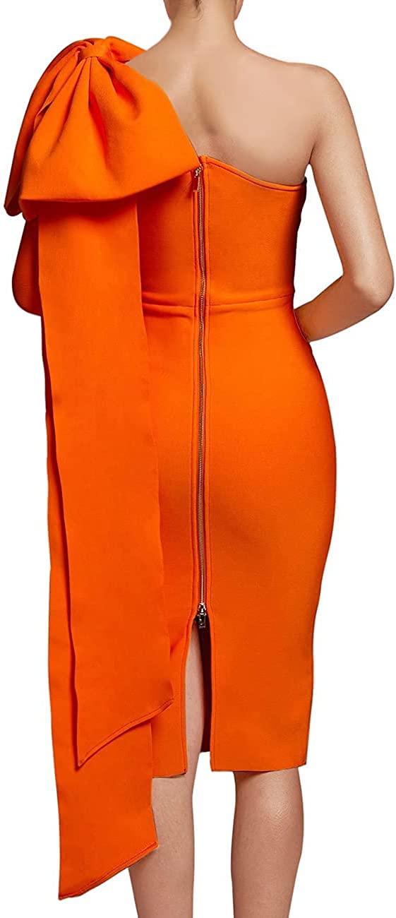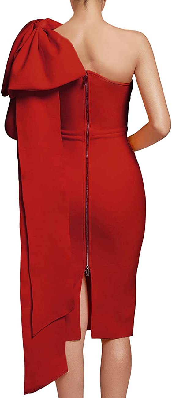 • Features:This bandage dress features long sleeve,one shoulder with big gorgeous bowknot,bodycon tight fit,flattering knee length cut