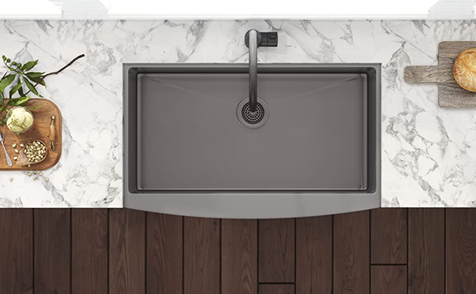 - MATCHING COLOR (Gunmetal Black) BASKET STRAINER drain assembly included. [Note: Basket strainer only works with standard plumbing. If installing a garbage disposal unit, use matching color disposal flange (Model # RVA1041BL) sold separately] | Stainless Steel BOTTOM PROTECTIVE GRID included - protects your sink surface and acts as a drying rack.
