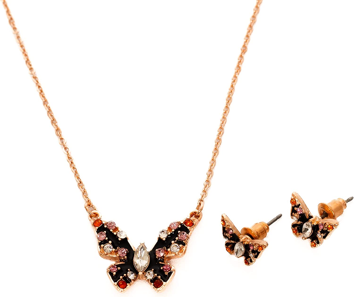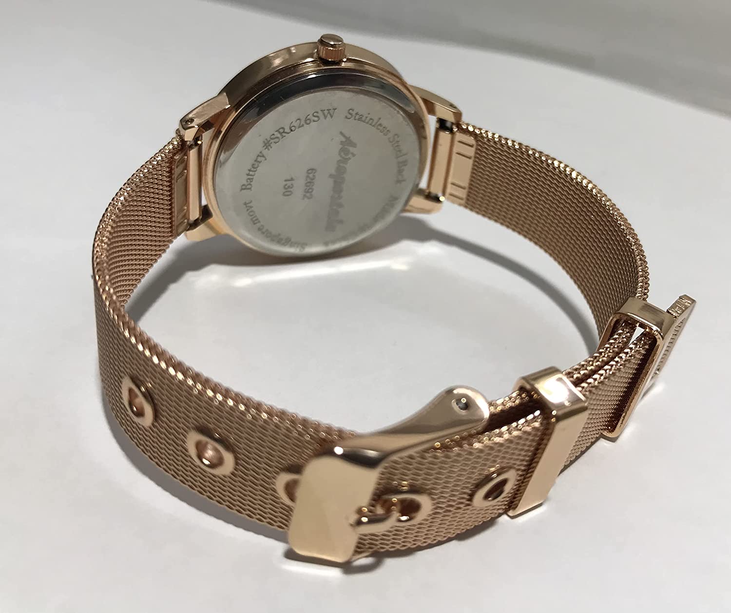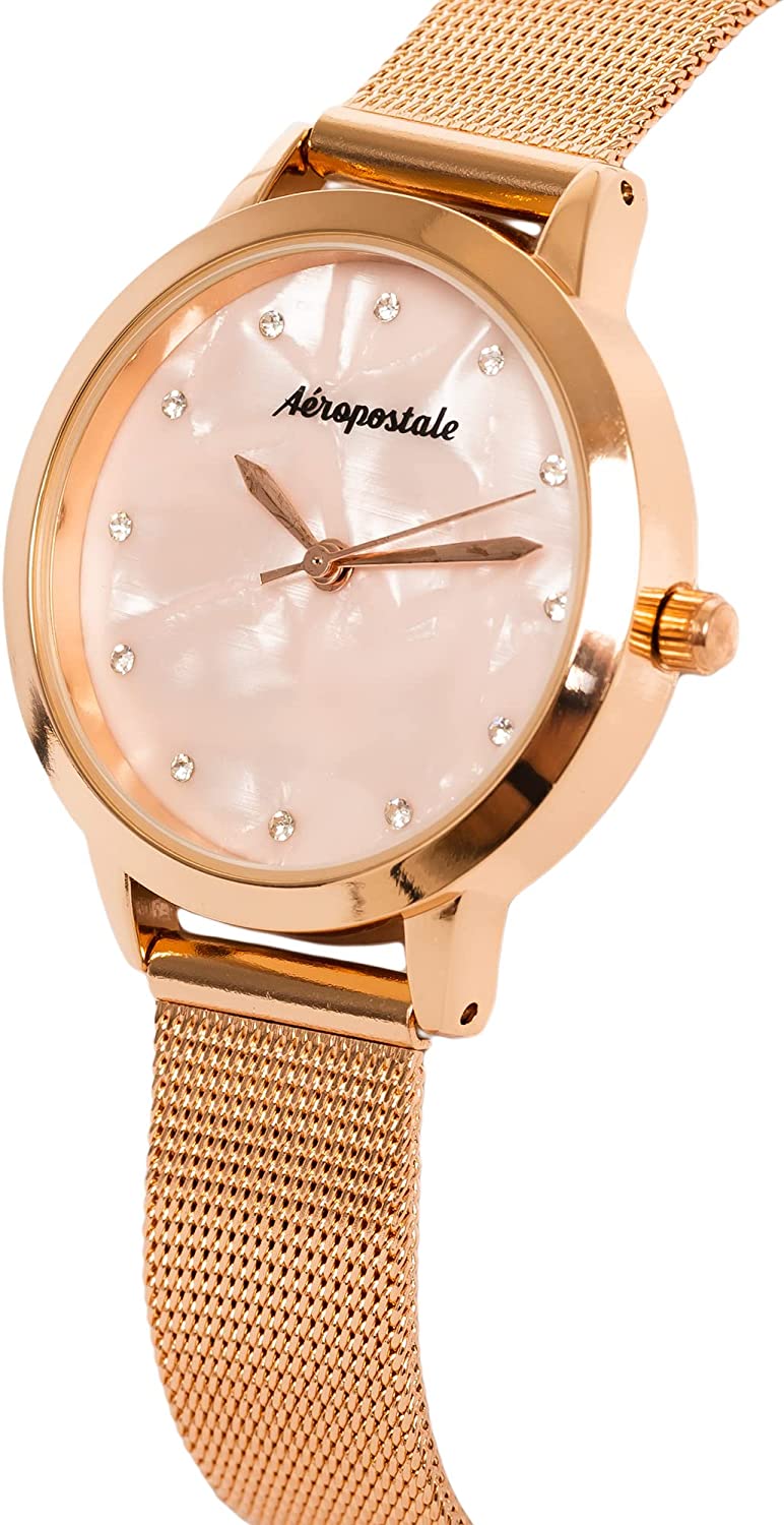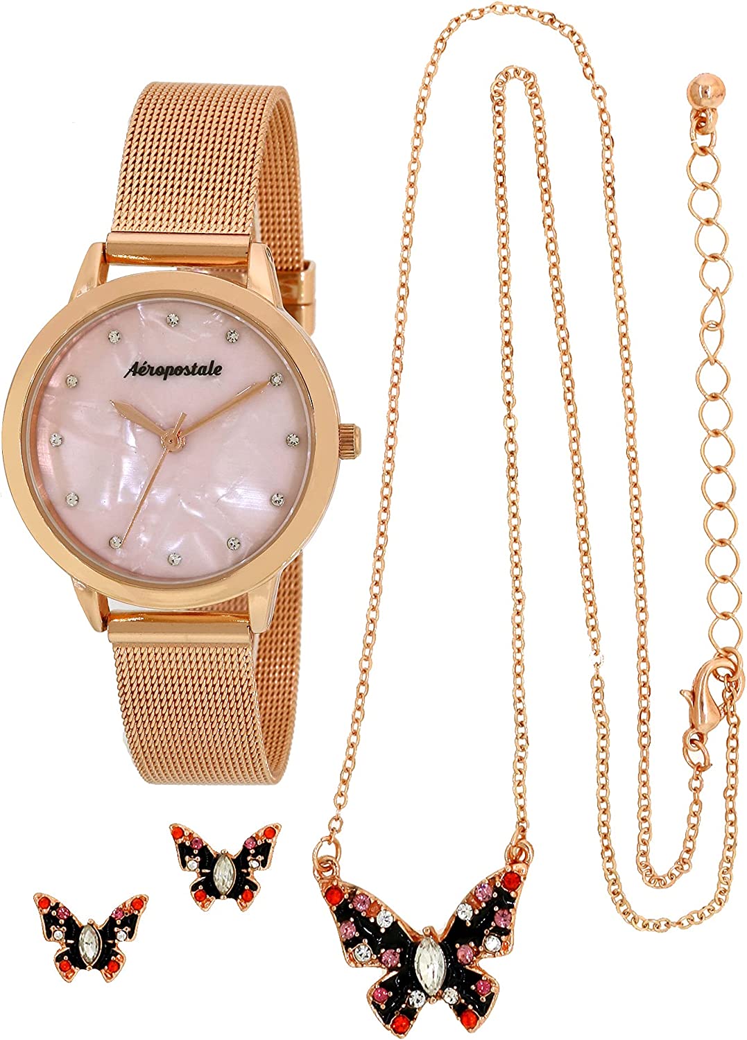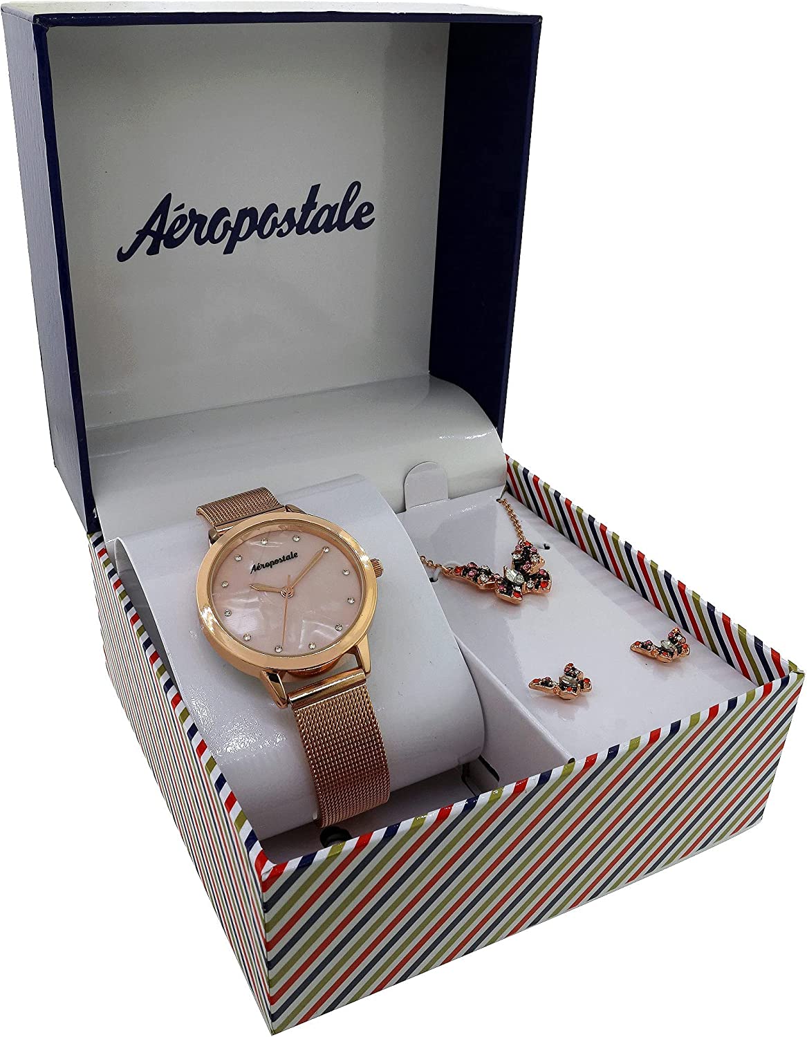Aéropostale Simple Watch and Jewelry 4 Piece Gift Set Rose Gold Gold Gray 1 Watch 1 Matching Necklace 2 Matching Earrings