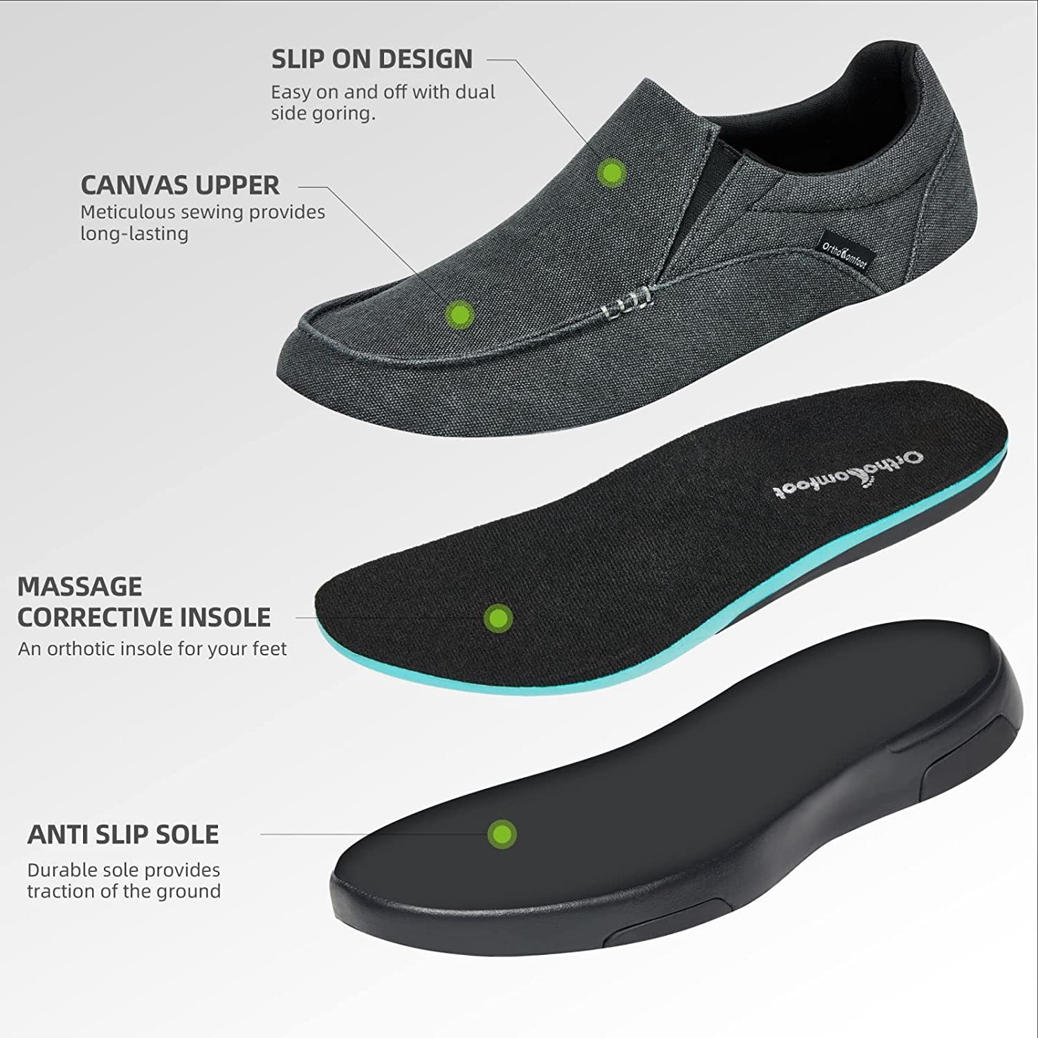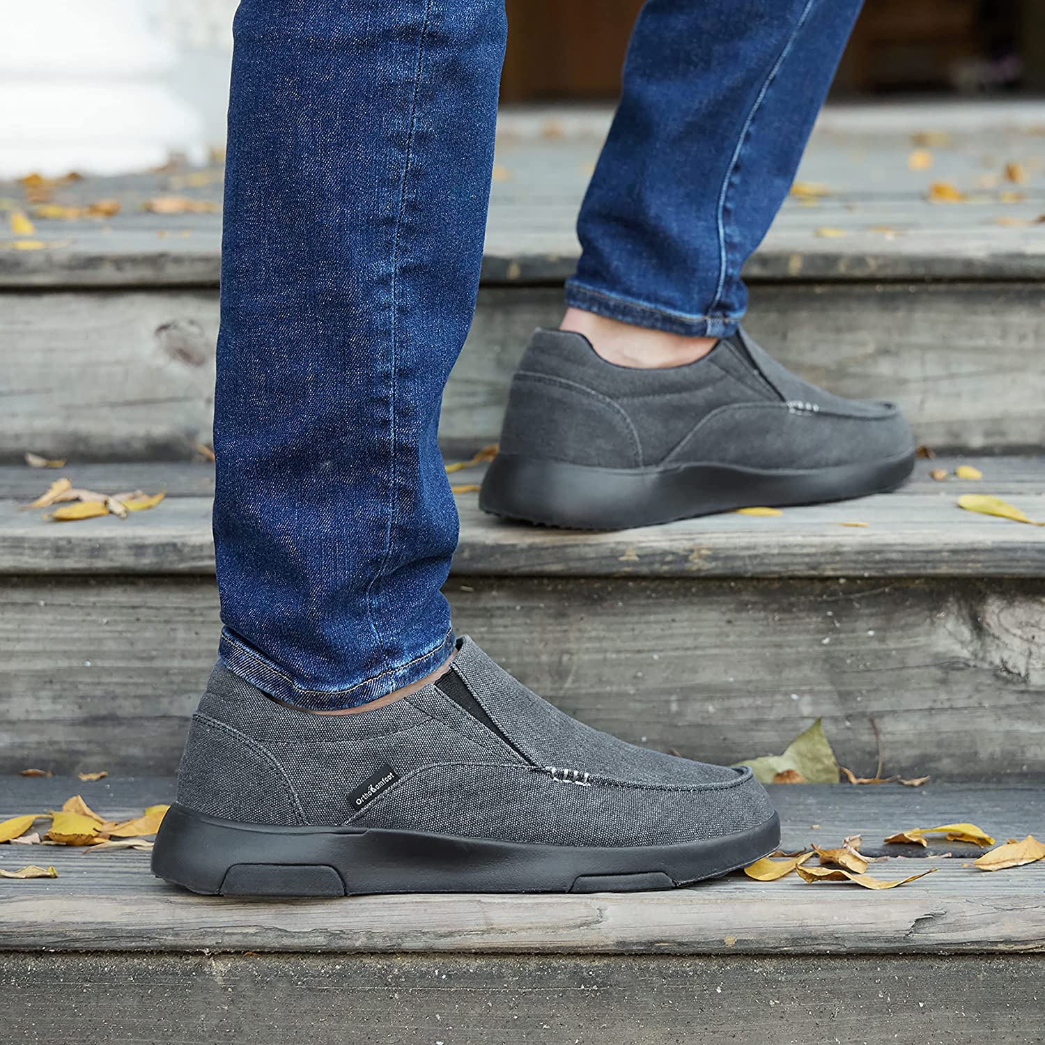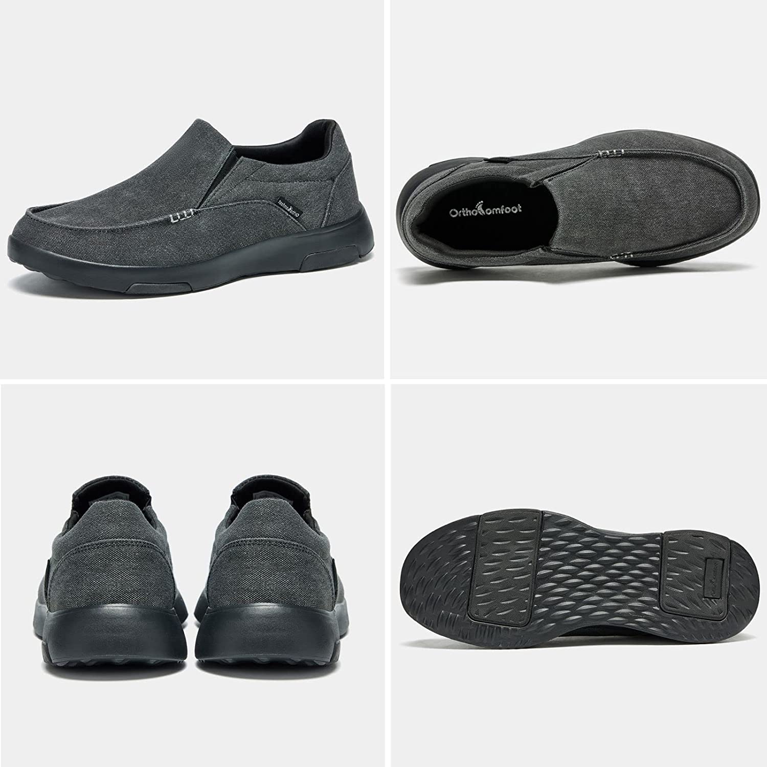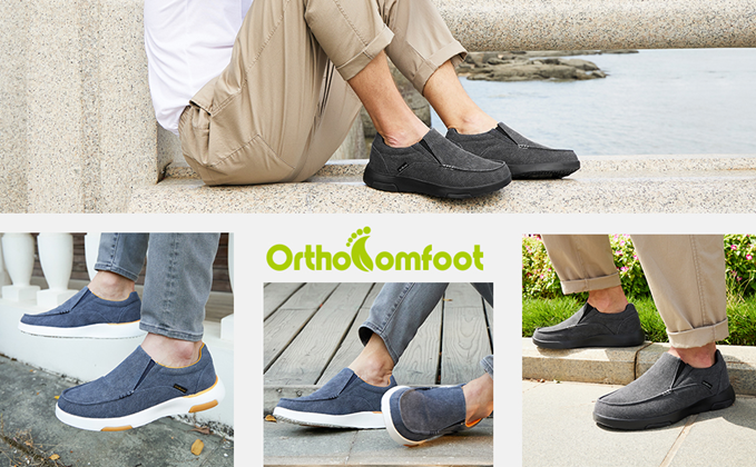 OrthoComfoot Men's Slip On Loafers,Arch Support Boat Shoes for Extra Cushioning and Pain Relief,Canvas Leisure Vintage Flat Walking Shoes