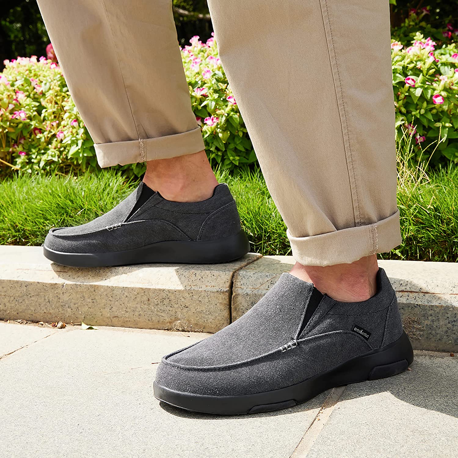 • ★COMFORTABLE UPPER:The mens canvas shoes use high-quality canvas fabric to create a sense of lightweight and give outstanding heat dissipation, all-round fitting foot.You can either wear them as slip on shoes or turn them into slippers, easily slide in for instant comfort whenever you want your feet relaxed. It provides a comfortable foot feeling while also can perfectly show the unique style of men.