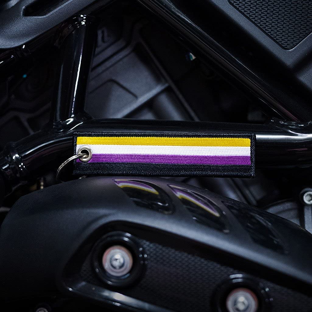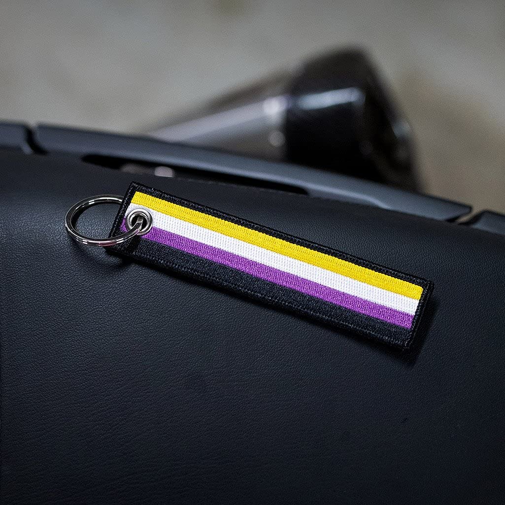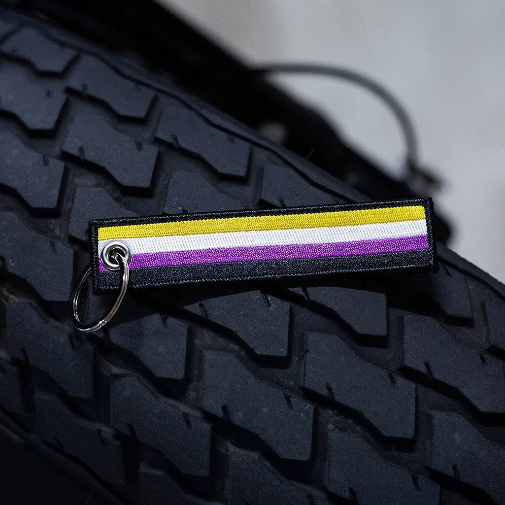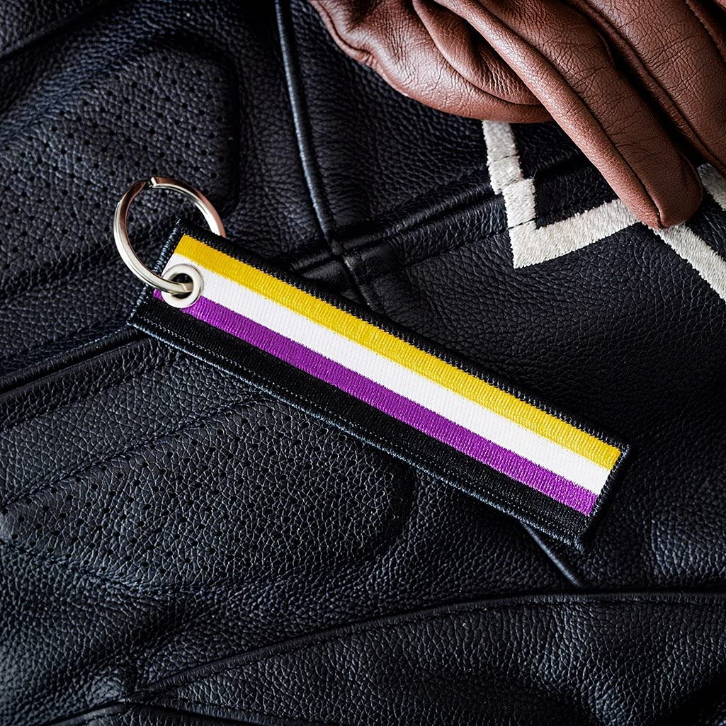 • Craftsmanship: this non binary flag key tag is crafted from durable fabric and stainless steel (so it's built to last). You won't have to worry about the design fading or wearing off as it's embroidered into the key chain - not just printed on top.