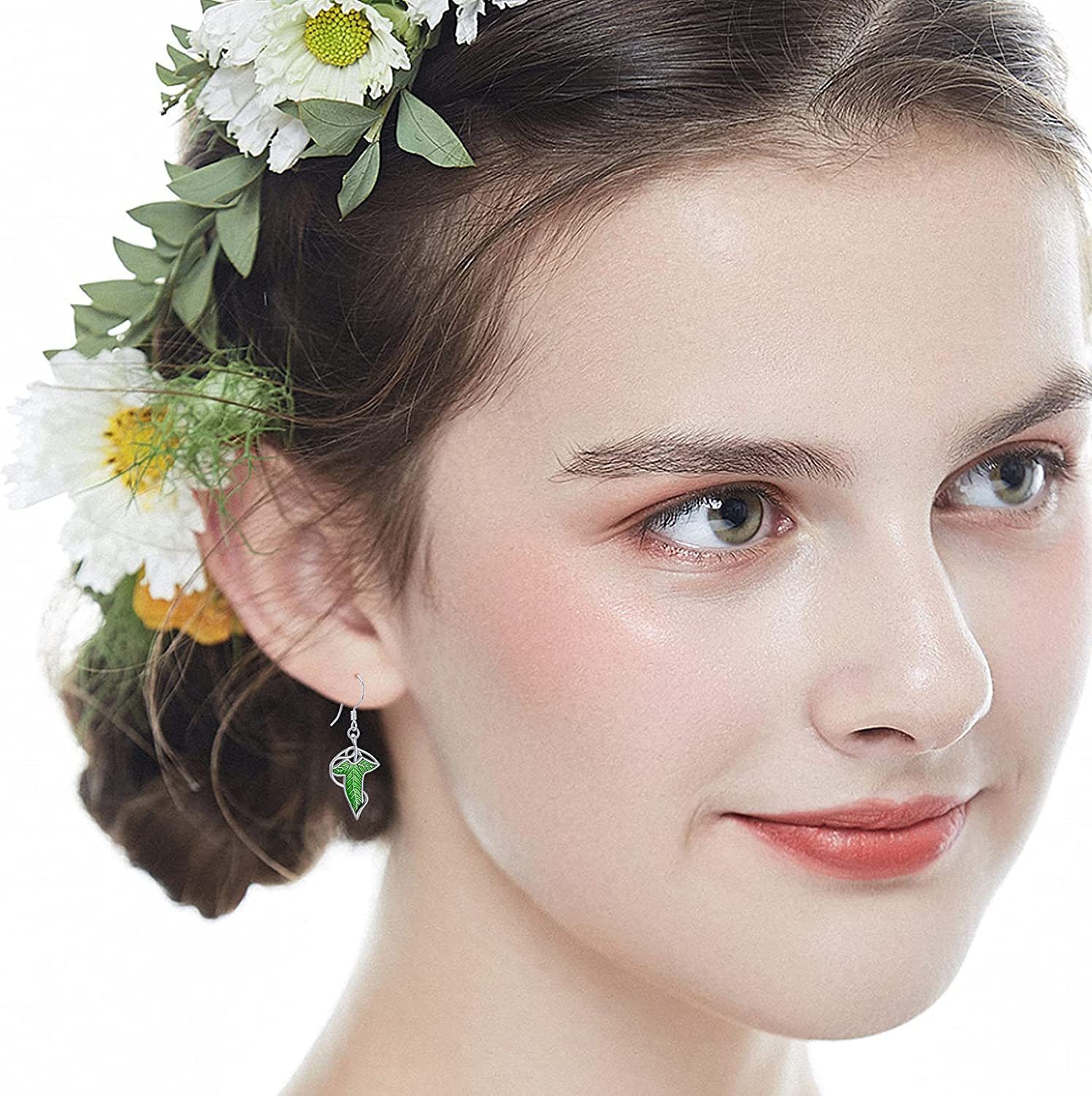 Lord of The Rings Jewelry 925 Sterling Silver Green Leaf Drop Earrings Lord of The Rings Gifts for Women Girls