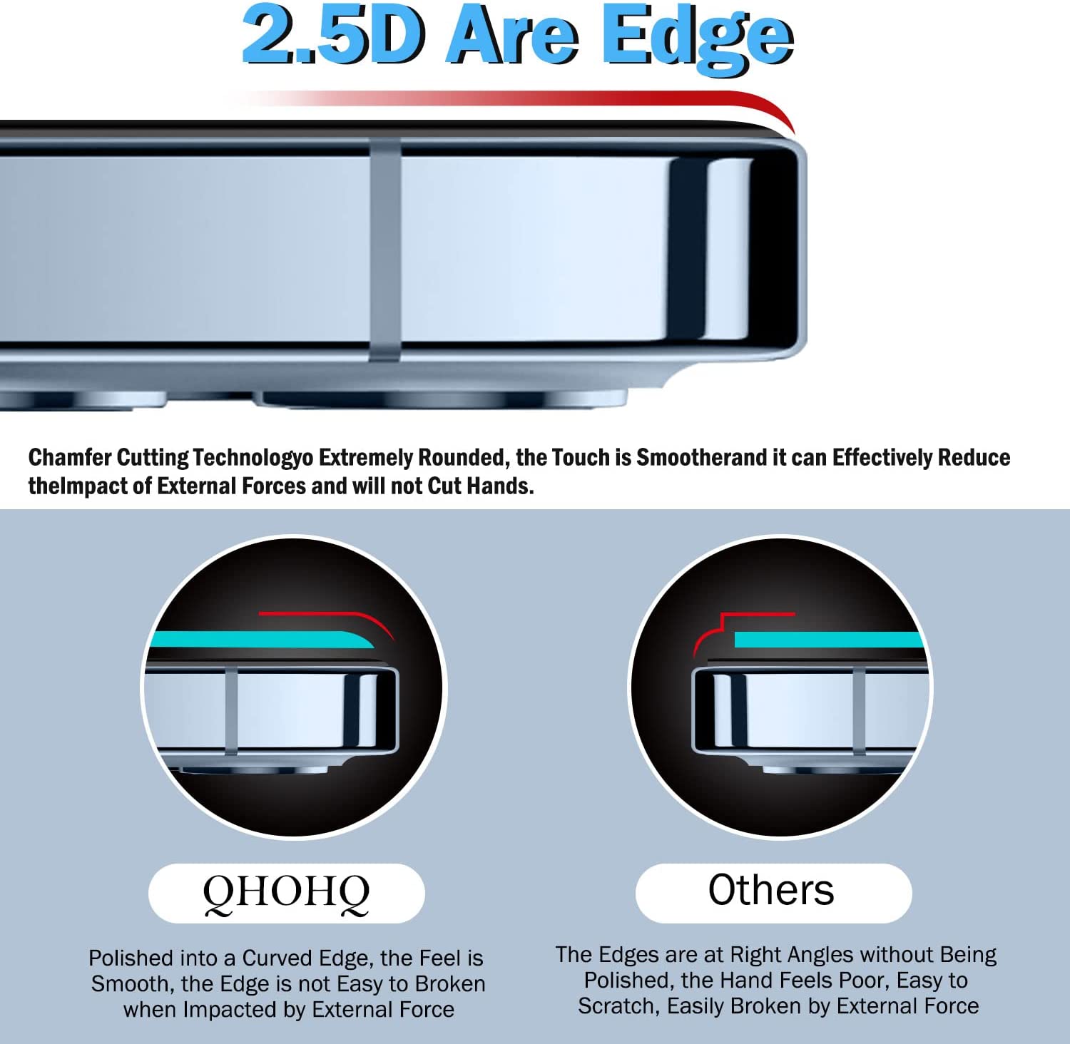 - [Ultra-Thin and Curved Design]: Glass shield made of 0.33 mm 9H Hardness tempered glass, maintaining 99.99% response sensitivity and touch, ensures quick app launch, smooth games and video playing, QHOHQ glass protection will bringing you a new perfect touch experience. protector de pantalla 2.5D rounded corner design, the edge feels smooth and never scratches.