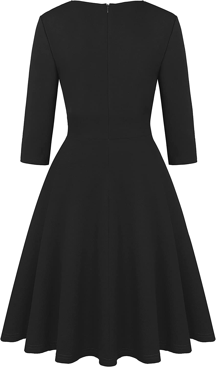 FIT AND FLARED DRESS: The women's party cocktail swing business dresses very flattering fit — true to size. Length is knee-length. It is the perfect length to wear out and works well for curvy girls. Good chest coverage and it doesn't show too much cleavage and sexy enough. Invisible zipper closure on the back to protect your skin better.