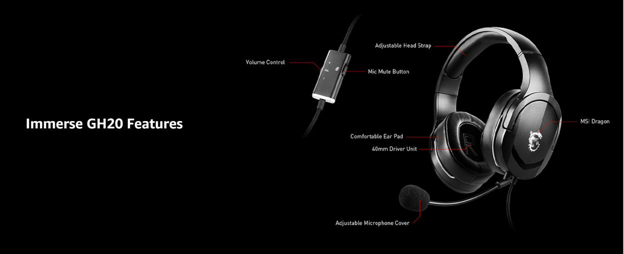 MIS Immerse GH 20 Featuring ultralight weight design, 2.5CM thick ear cups design, 40mm driver units, quick inline controller and cross platform compatibility