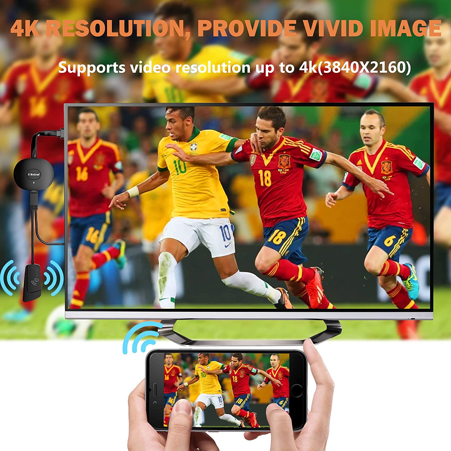 • ❤️【4K Ultra HDR & Wireless connection】TIMBOOTECH 4k HDMI wireless display adapter with 4K (3840 X 2160) resolution, WiFi TV Display Dongle Adapter can mirror or cast 1080 P 4K videos/games/music/photos/files from the phone, pad, laptop to TV/projectors /monitors. The wireless iphone to tv adapter is suitable for home entertainment/ business/education/ training.