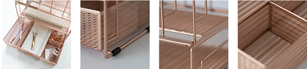 - PREMIUM QUALITY: Made of strong metal mesh and finished with rose gold paint, this File Organizer looks great on any desk! This all in one inbox organizer caddy will look great on a desk while also offering functionality and a modern look.