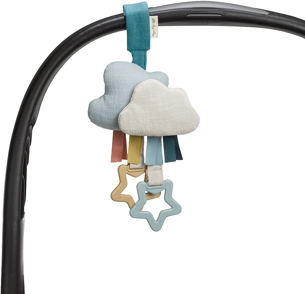 Itzy Ritzy Bitzy Bespoke Jingle Travel Toy for Stroller, Car Seat or Activity Gym; Features Jingle Sound, Hexagon Rings and Adjustable Attachment Loop, Cloud