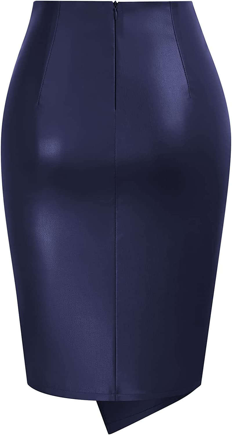 FEATURES: Asymmetrical Wrap Front with concealed zipper in the back.Well elastic pencil skirt