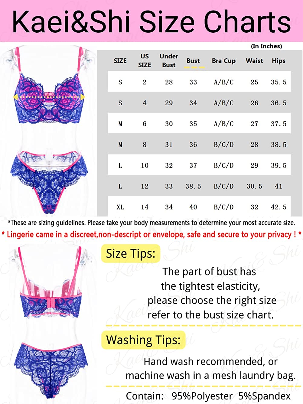 • ✿Fabric: Kaei&Shi 2 piece lingerie set for women is made of high quality lace fabric, lightweight and breathable material will bring you soft touch feeling, spicing up your life.