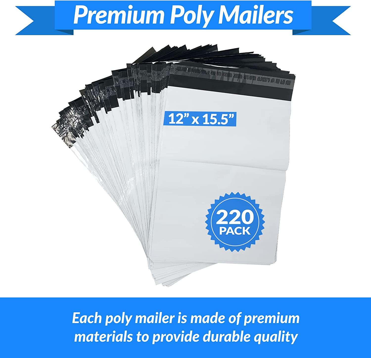 Poly Mailers | 12" x 15.5" | White | Self Sealing | 220 Pcs