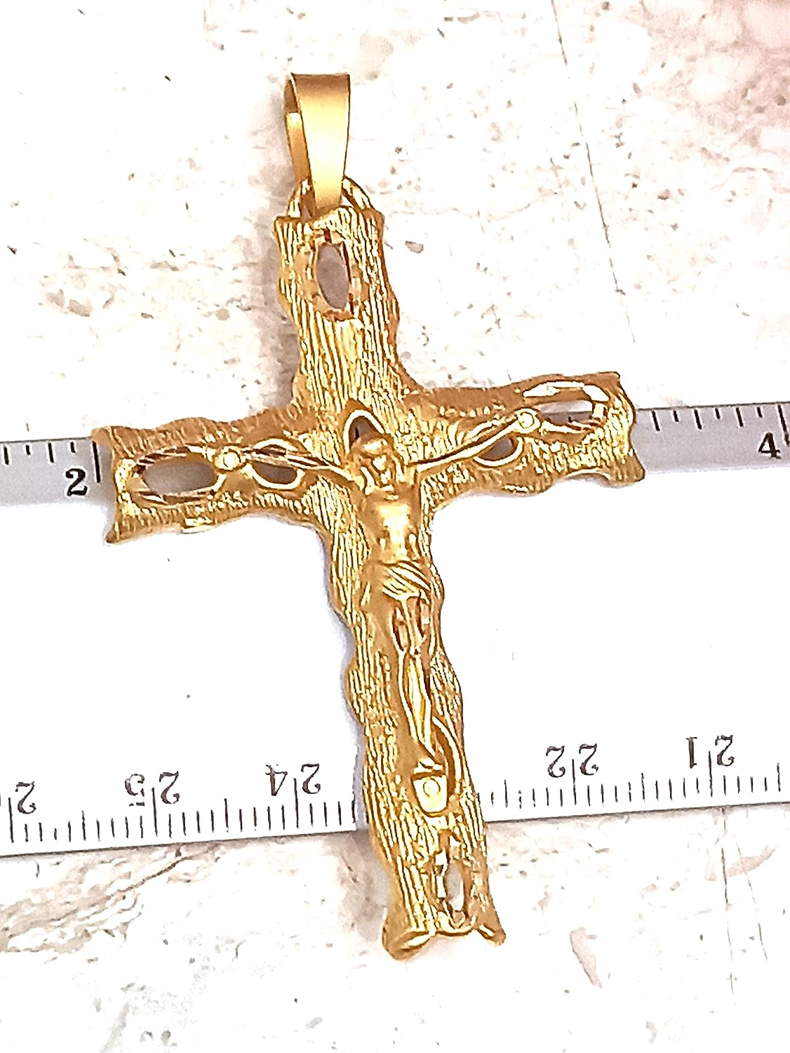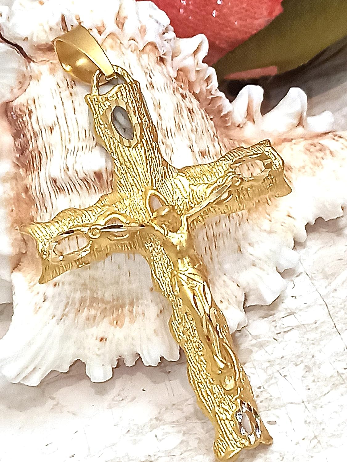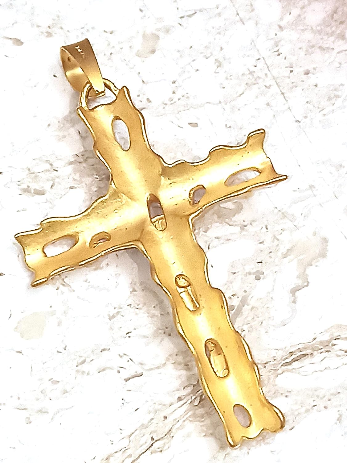 18k SOLID GOLD Cross Necklace for women LARGE Cross pendant Luxury Jewelry Charms HANDMADE Cross Pendant Designer Jewelry for Christian Women Religious UNIQUE gift for women 18kt Gold Jesus Pendant