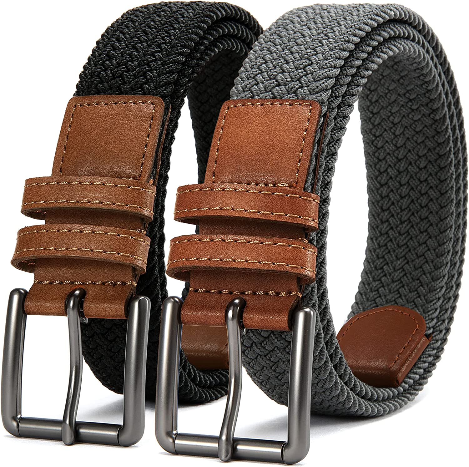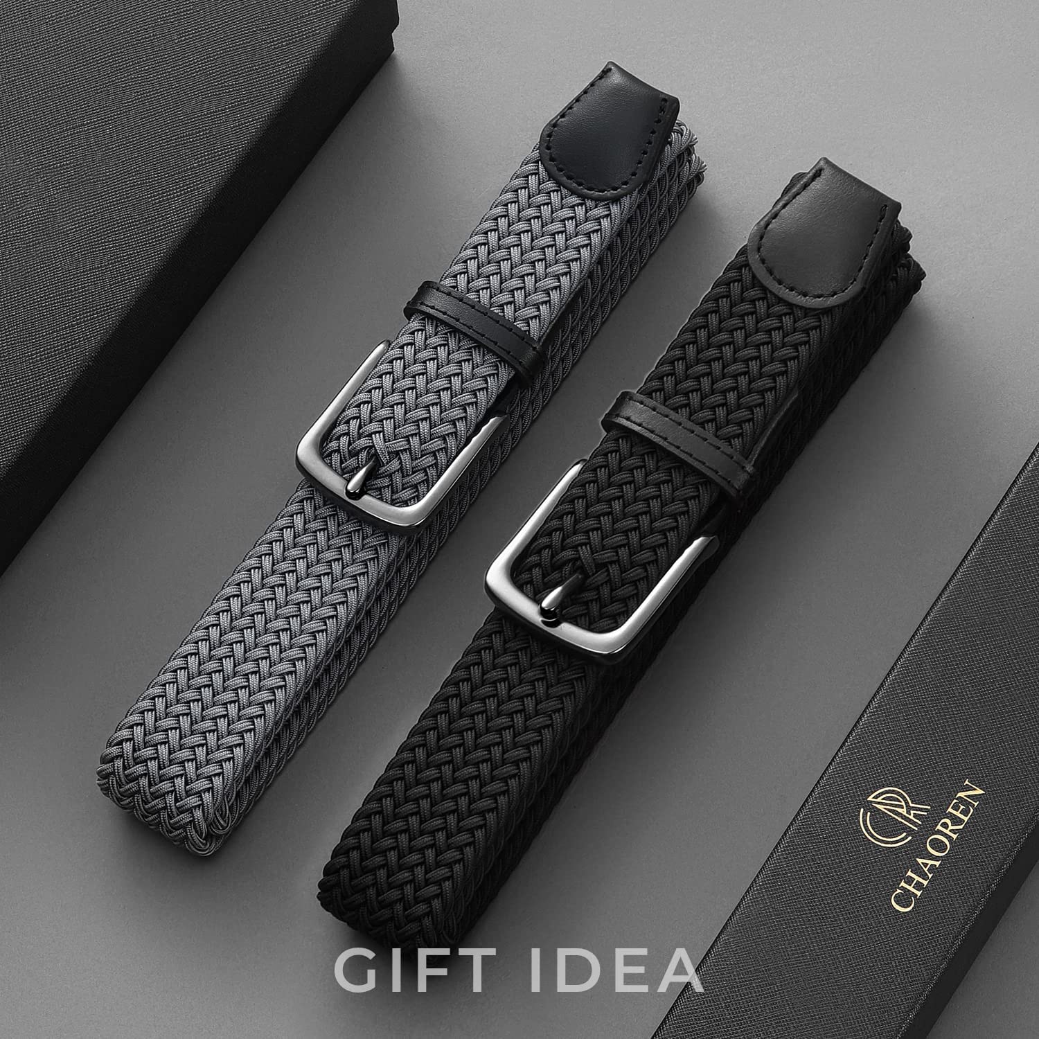 CHAOREN Woven Belts for Men 2 Pack - Stretch Belt 1 3/8" for Golf Pants in Gift Set Box - Tight Performed Elastic Design