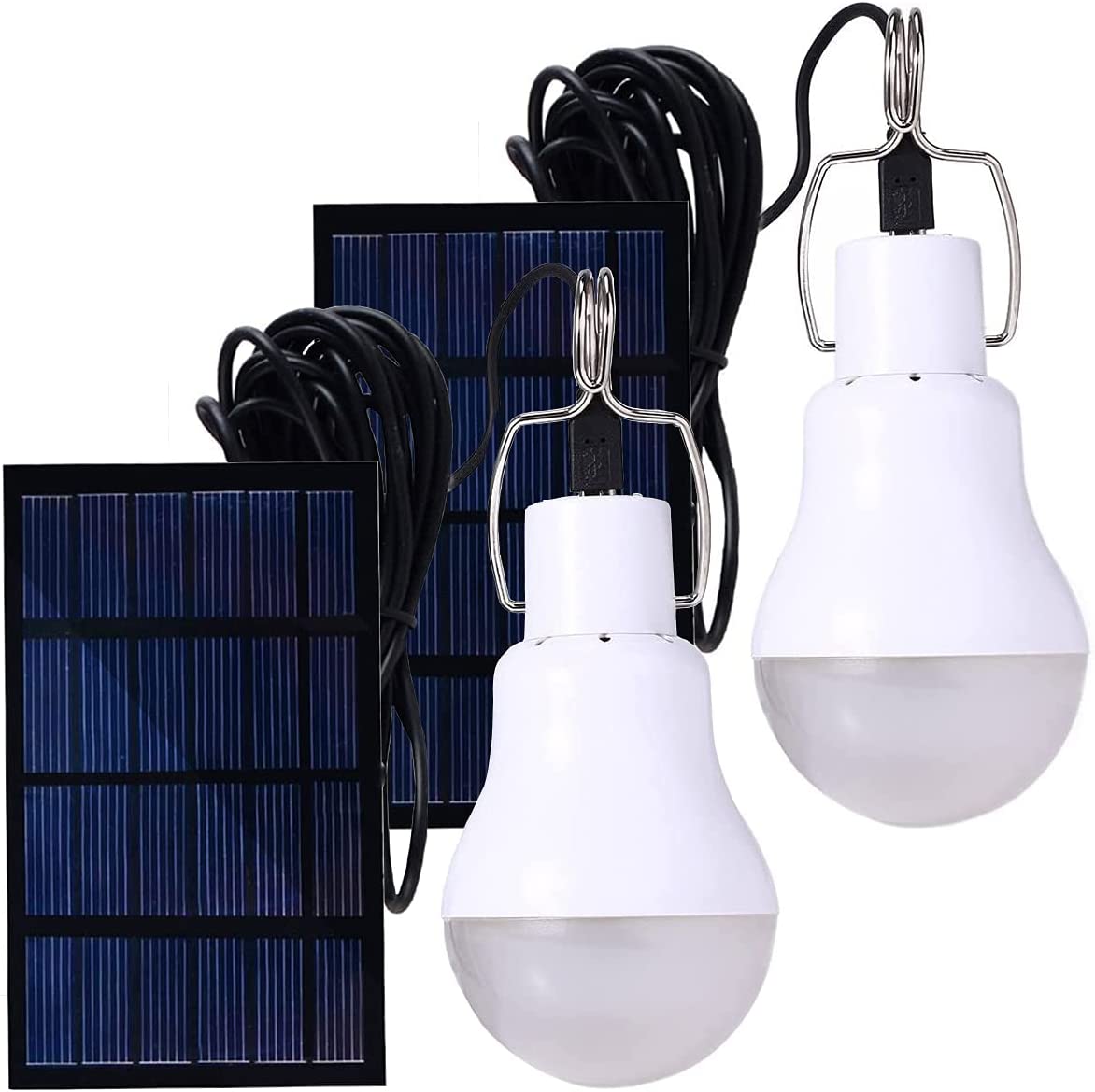 FLRONGSUN Solar Light Bulb Portable 350LM Solar Powered Camping Light Led Lantern Outdoor for Lamp Light Hiking Fishing Tent Indoor Shed Chicken Coop Hurricane Emergency With USB Chargeable(Pack of 2)