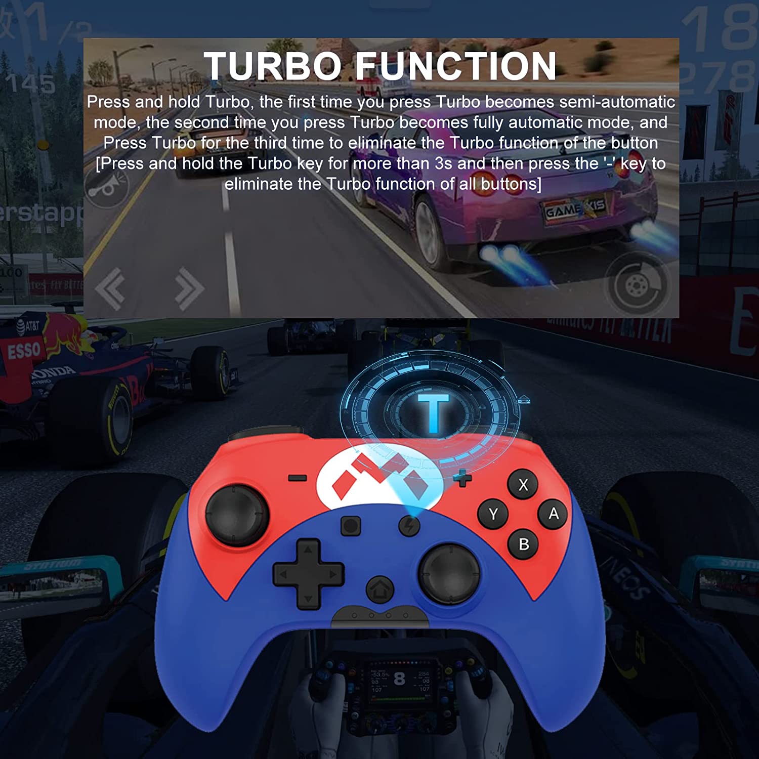 ?【Dual Motors and Six-Axis Gyroscope for Switch】This gaming controller has a one-button connection to the Switch function, you can easily connect by long pressing the c button. The super sensitive 6-axis gyro sensor provides precise motion control. Plus dual vibration motors with timely shock feedback, switch controller make you feel the ultimate gaming experience.