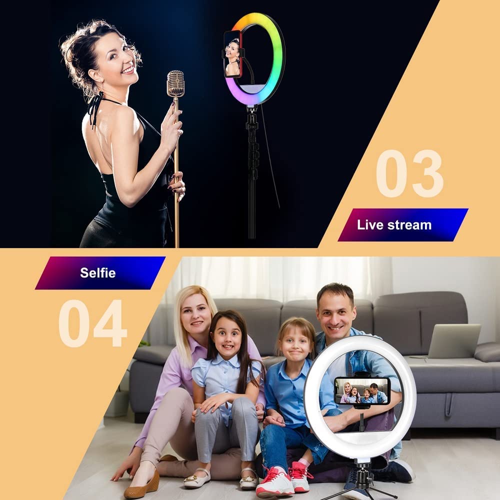 • 【Tiktok Ring Light with Tripod】12-in Camera Stand with Ring Light with 360°rotatable ball joint. Phone Tripod with Ring Light and 164 pcs of advanced LED light bead,with long lifetime.