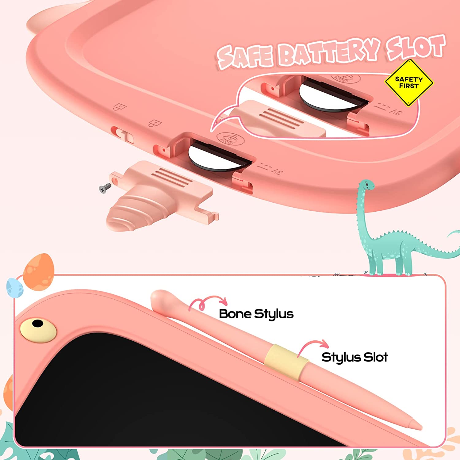 • ?Creative Gift for Kids? Do you have a hard moment picking a unique birthday gift for your little kids? Have a look at this dinosaur toy 8.5 LCD writing tablet! A playable and creative gift for boys and girls. They will be surprised and happy to receive this cute toy on Birthdays, Easter, Children's Day, Christmas and all other occasions.