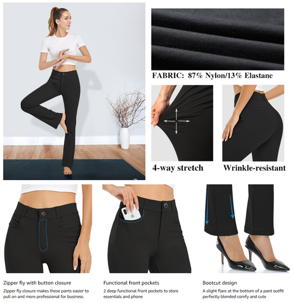 BOOTLEG & BUTTON FLY STYLE: Our bootcut yoga dress pants have zipper fly with button closure, feature both high-waist and tummy control, suitable for each body type. Slight flare at cuffs design to create a leg-lengthening silhouette, giving a streamlined look.